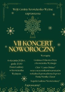 Zaproszenie: Koncert Noworoczny – 6 I 2025 .godz. 17.00 Sala Domu Ludowego. Wystąpią Orkiestra Kapela i chór Canto Divino wraz z uczestnikami warsztatów wokalnych.