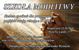 Szkoła Modlitwy – początek 23 X 2018 – Mszą św. o godz. 17.00