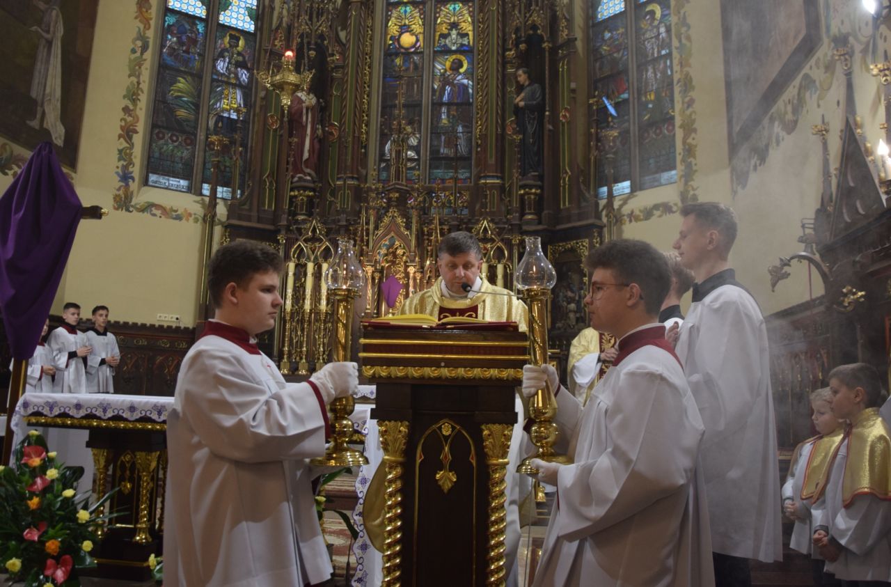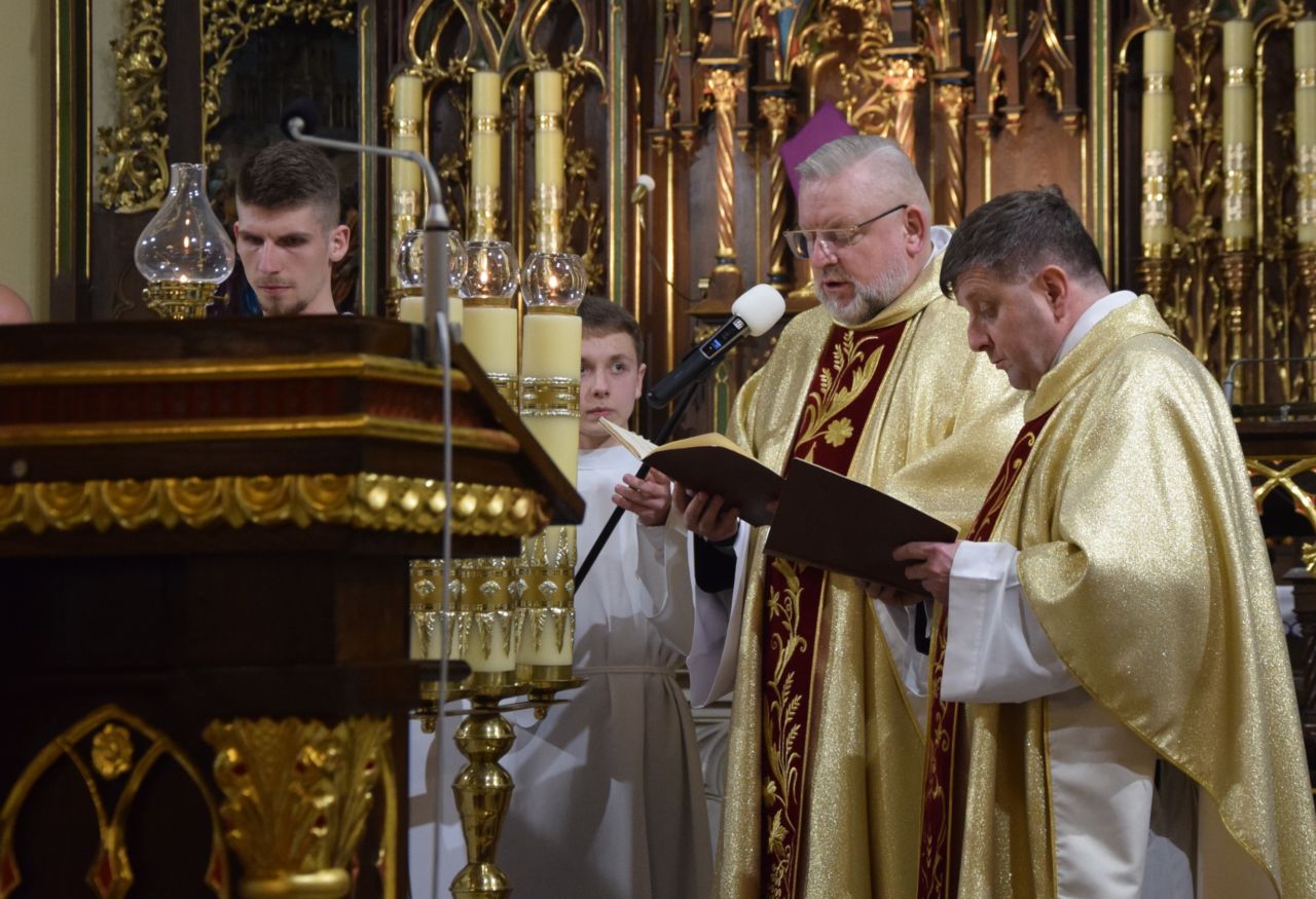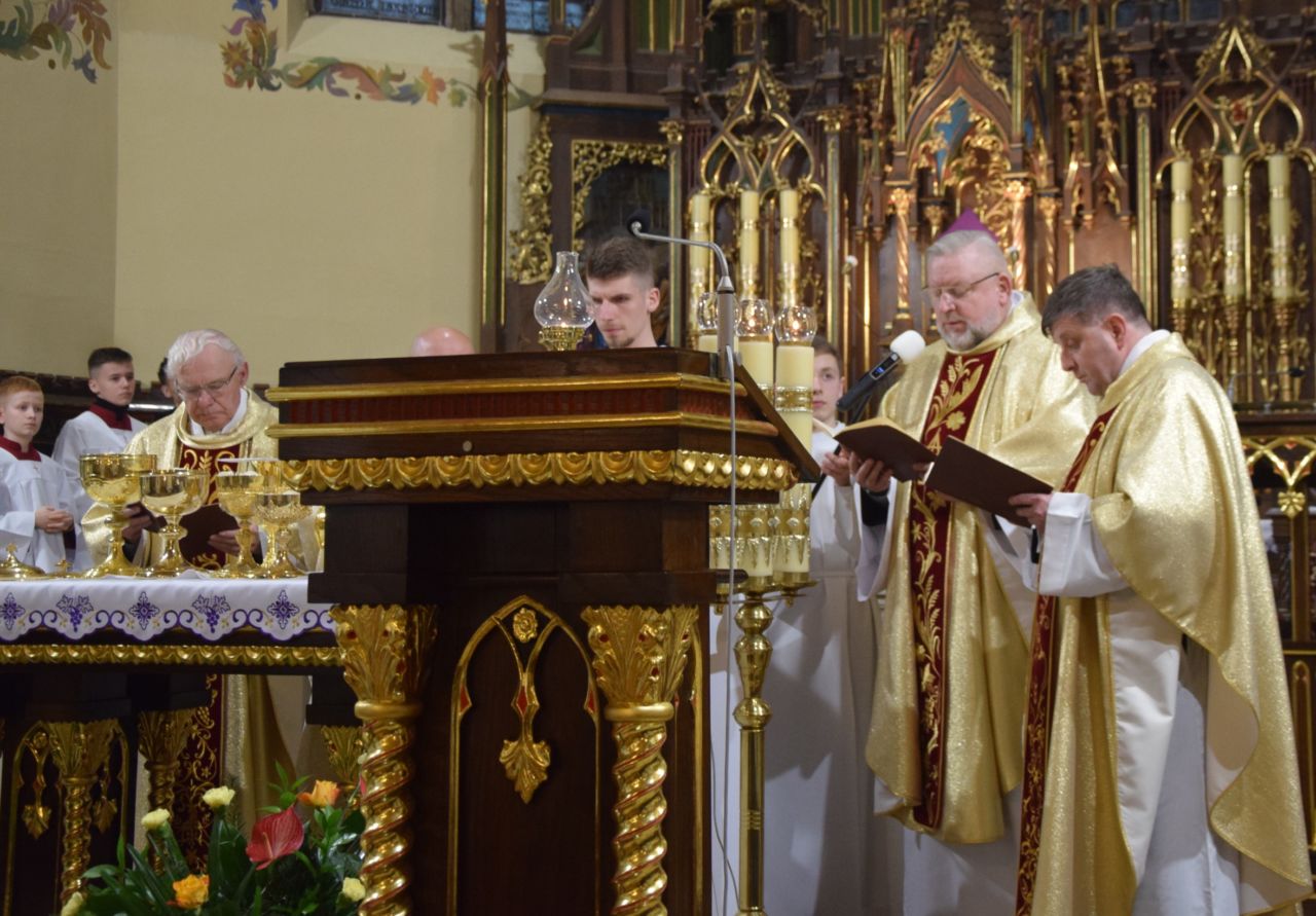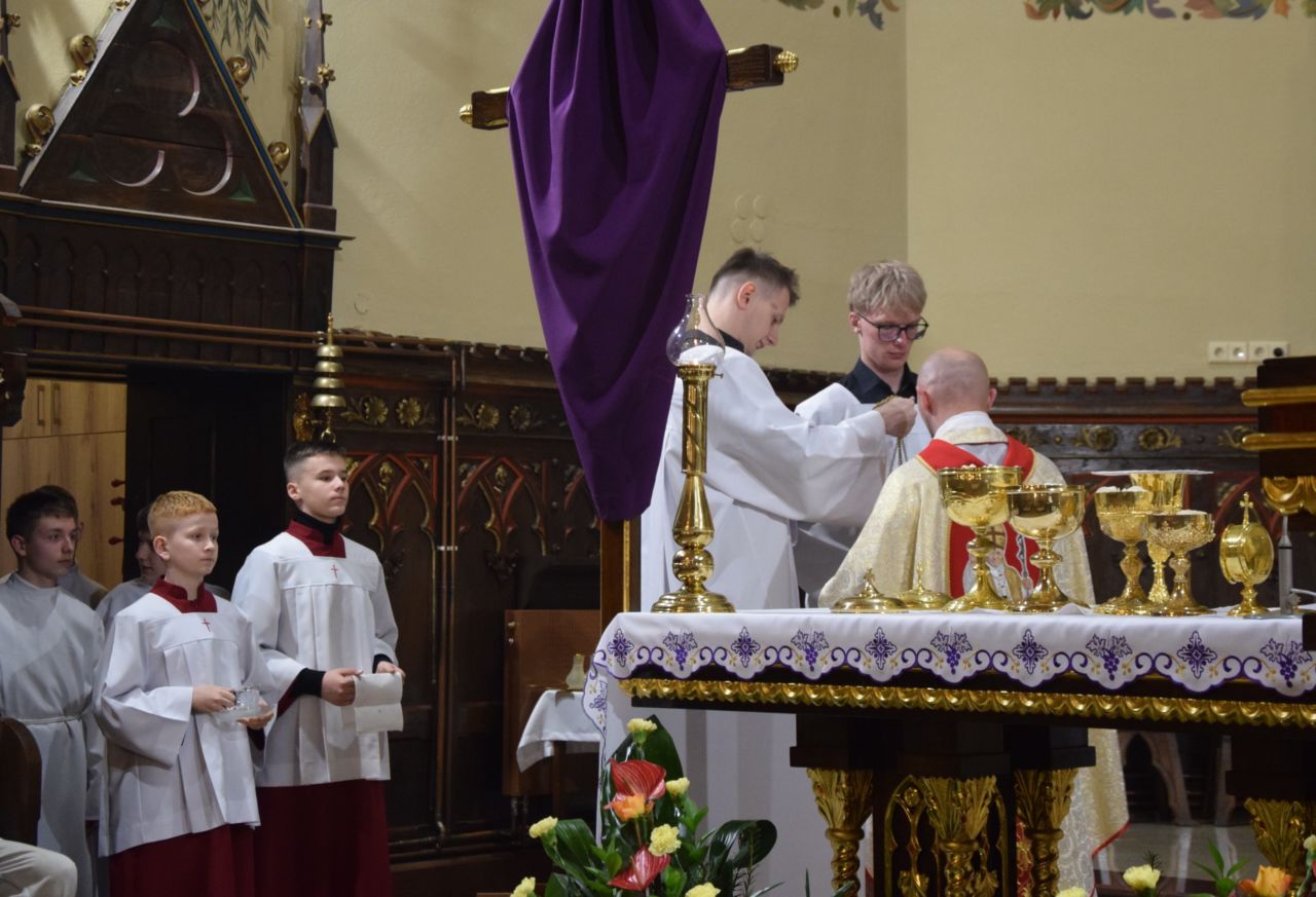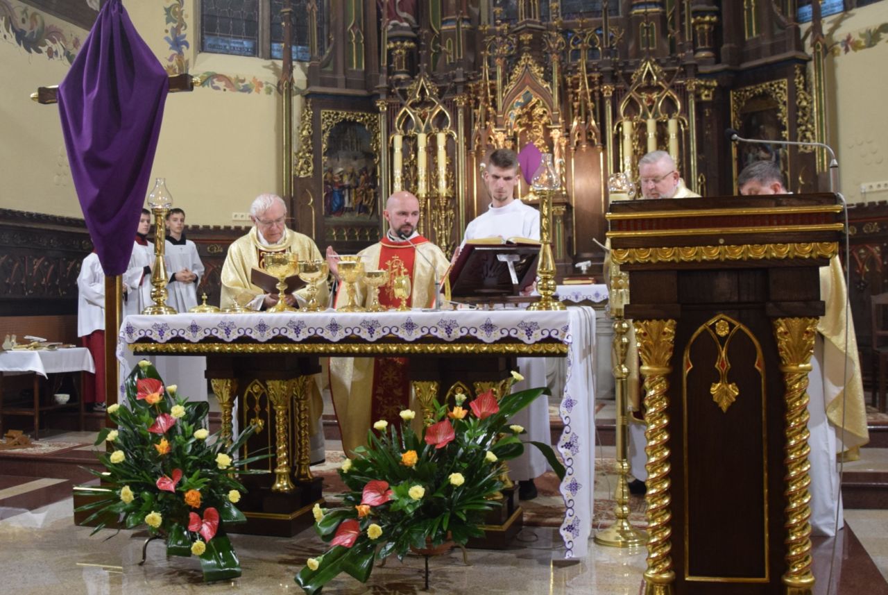 W naszej parafii przeżywanie Świętego Triduum Paschalnego rozpoczęła uroczysta Msza Wieczerzy Pańskiej o godz. 18.00. Po jej zakończeniu nastąpiło przeniesienie Najświętszego Sakramentu do ciemnicy, gdzie wierni trwali na adoracji, rozważając tajemnicę męki i miłości Chrystusa.