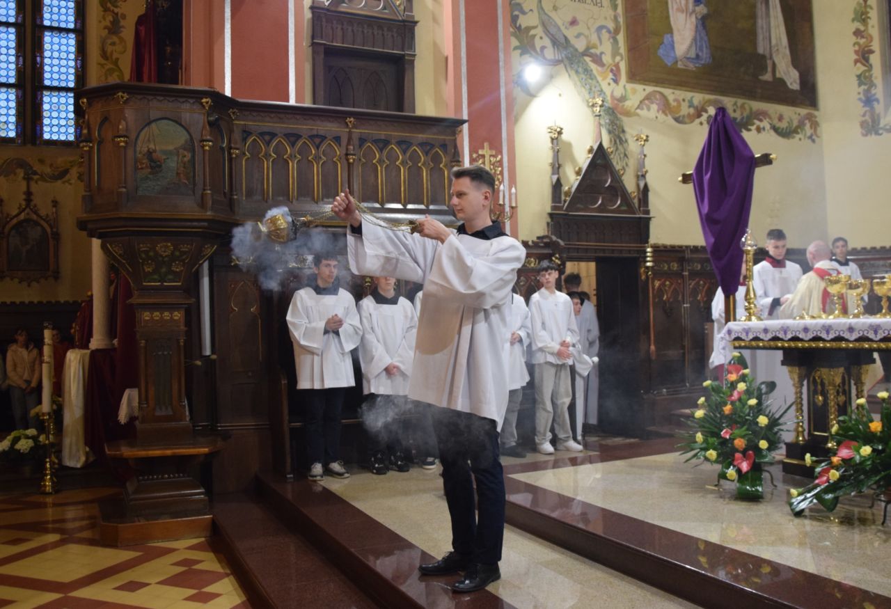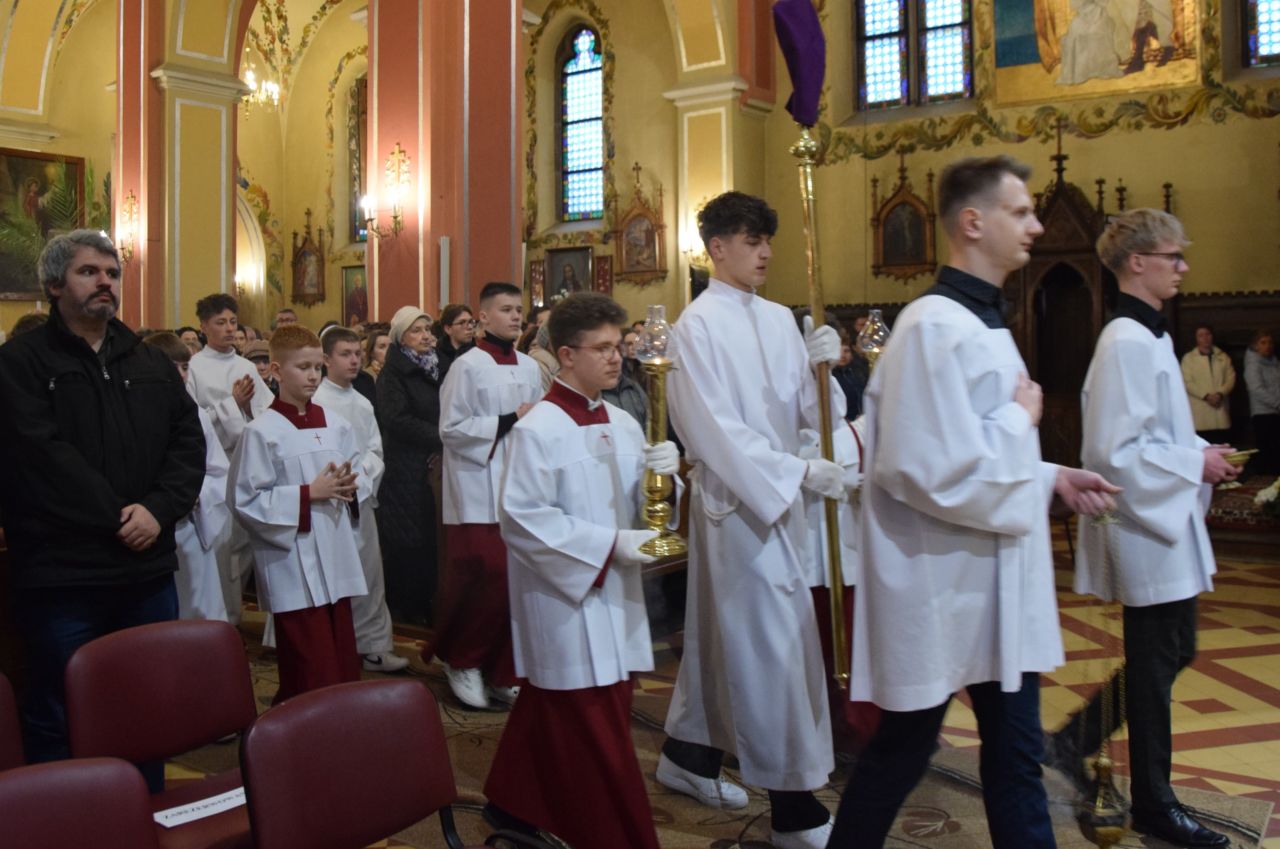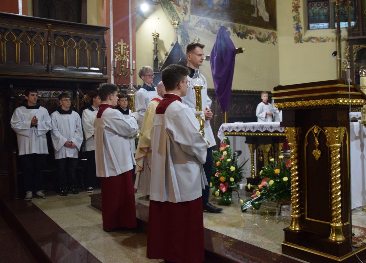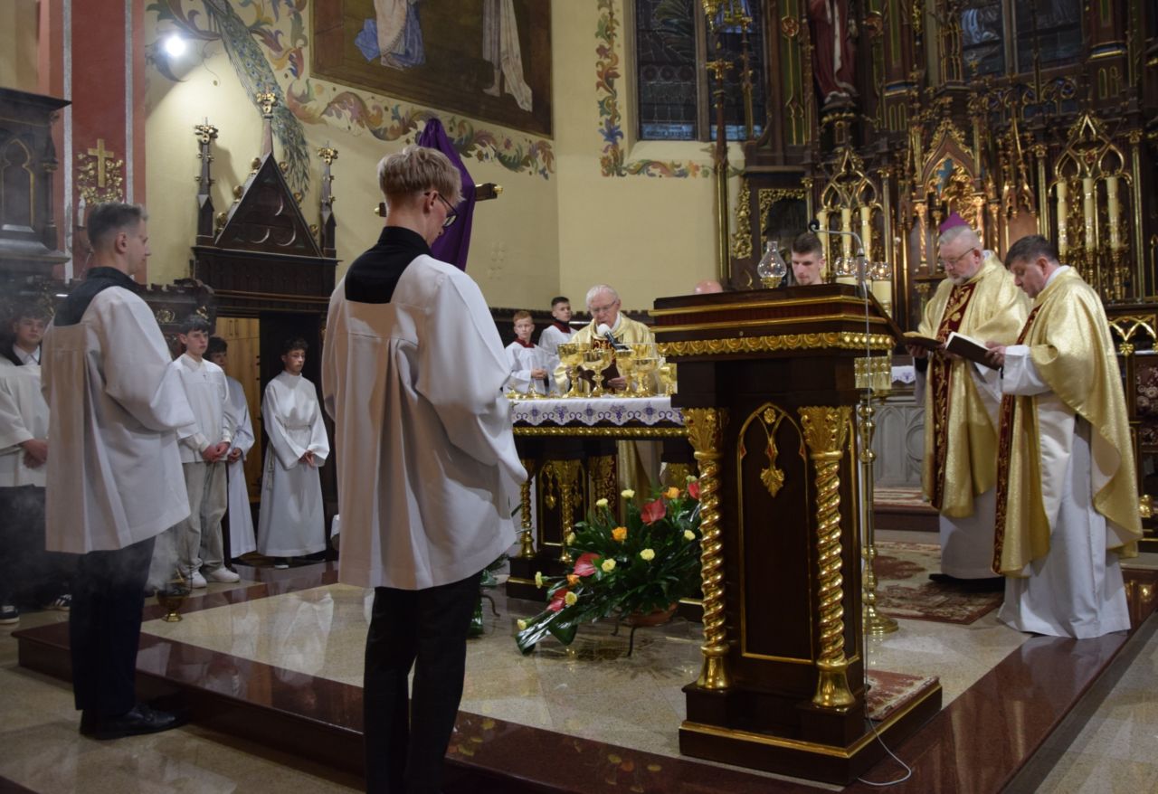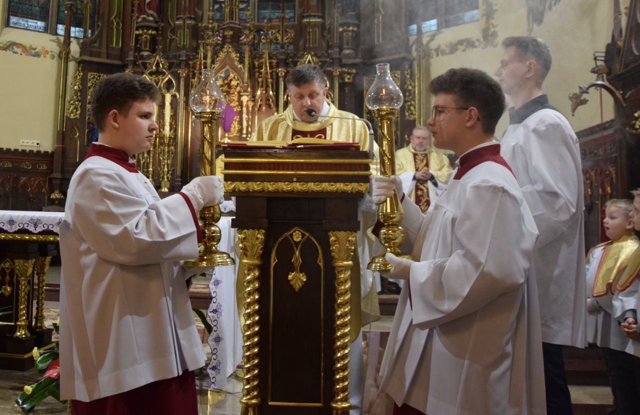 W naszej parafii przeżywanie Świętego Triduum Paschalnego rozpoczęła uroczysta Msza Wieczerzy Pańskiej o godz. 18.00. Po jej zakończeniu nastąpiło przeniesienie Najświętszego Sakramentu do ciemnicy, gdzie wierni trwali na adoracji, rozważając tajemnicę męki i miłości Chrystusa.