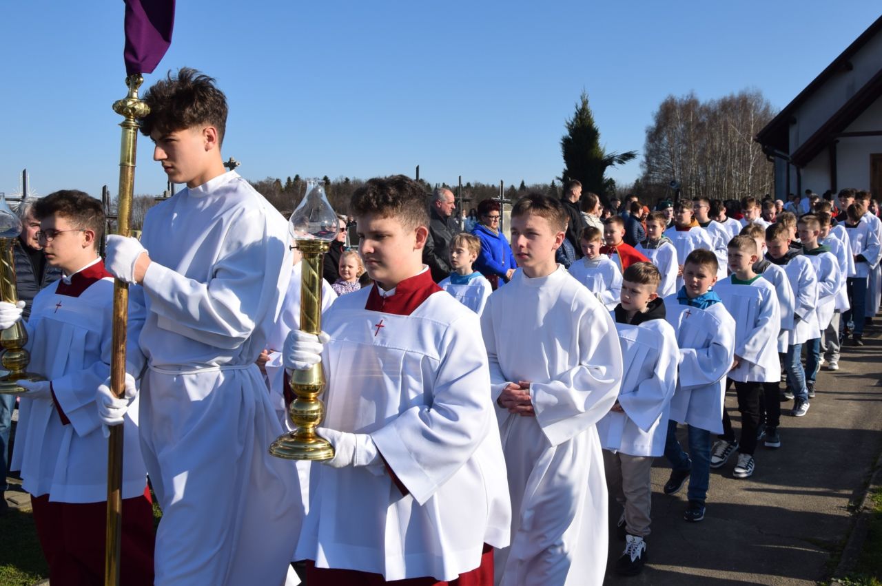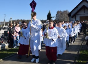 O godz. 16:30 odbyła się Droga Krzyżowa, która wyruszyła z cmentarza i w modlitewnym skupieniu przeszła do kościoła. Wspólne rozważanie stacji Męki Pańskiej było dla nas okazją do głębszego przeżycia tajemnicy krzyża.
