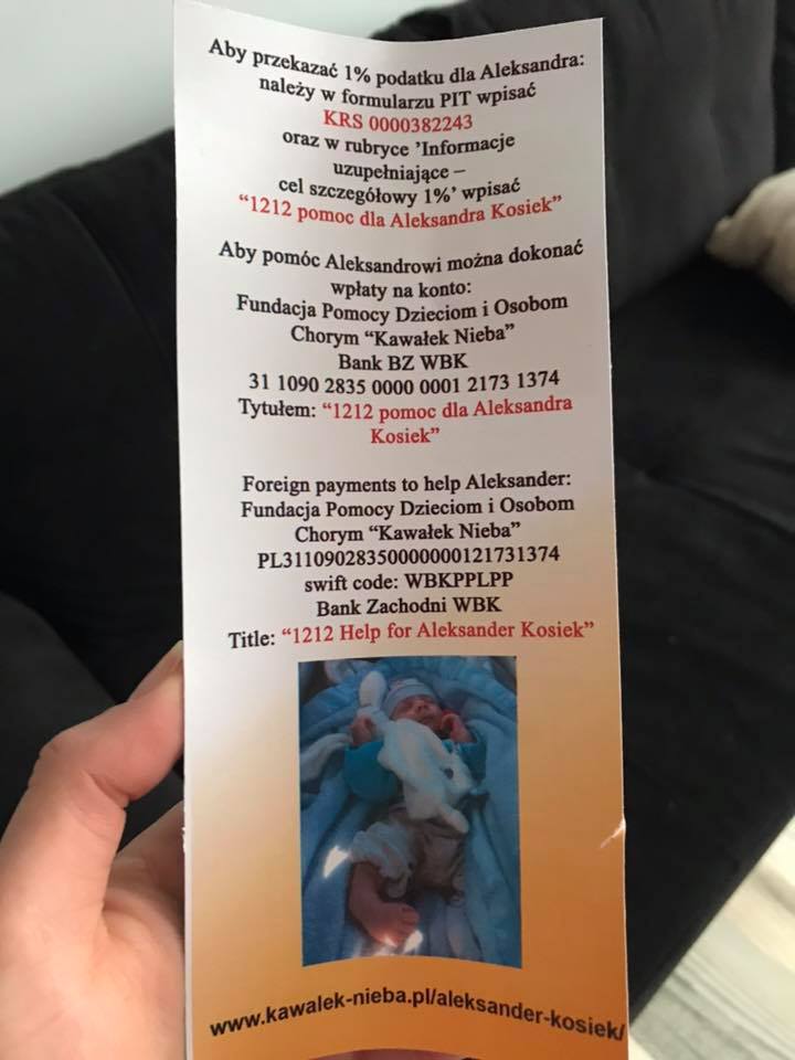 oraz w rubryce ’Informacje uzupełniające – cel szczegółowy 1%’ wpisać “1212 pomoc dla Aleksandra Kosiek”.