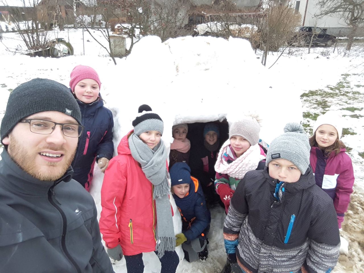 Chcąc jak najlepiej wykorzystać i nacieszyć się zimą ks. Paweł wraz z grupą Dzieci Bożych postanowili wykorzystać dobrą pogodę na całego. I tak dzięki temu powstał na ogrodzie plebani ponad 2 metrowy śnieżny bałwan oraz duże iglo. Śmiechu , zabawy i wygłupów było sporo, jednak efekt końcowy pracy Dzieci Bożych przez tygodnie dzięki pogodzie można podziwiać.