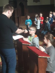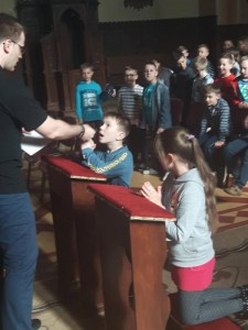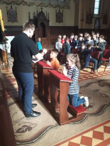 Przygotowania do Pierwszej Komunii Świętej idą z pełną mocą i zaangażowaniem. Dzieci z naszej parafii odbywają swoje próby na których wraz z księdzem Katechetą, ćwiczą przed uroczystością podczas której po raz pierwszy przyjmą prawdziwego Pana Jezusa do swojego serca. Trzymamy kciuki za nasze dzieci nie zapominając o modlitwie za nich, ich rodziców i rodzeństwo.